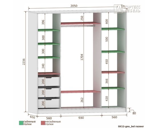 Шкаф-купе СЕНАТОР ШК12 геометрия 2050/2216/650 (белый)