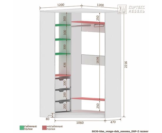 Шкаф-купе СЕНАТОР ШК30 классика (угловой) 1200/2216/1200 (венге/дуб сонома)