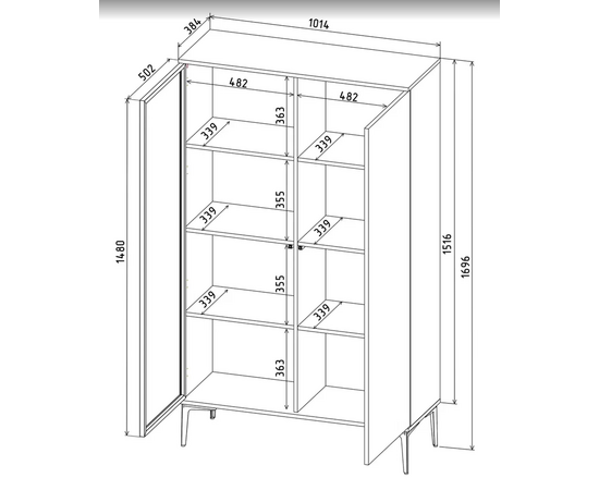 - Внутренняя полка ЛДСП 16 мм Дуб Золотой, оклеивается кромкой: дуб золотой 0,45 мм.