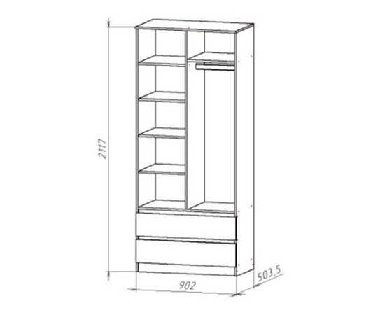 - Комбинированный, одна половина 4 полки, во второй штанга.