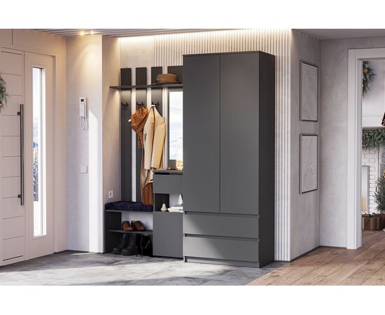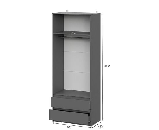 Шкаф NN Мебель (МС Денвер К) Серия 2 Графит серый, двухстворчатый с 2 ящ.