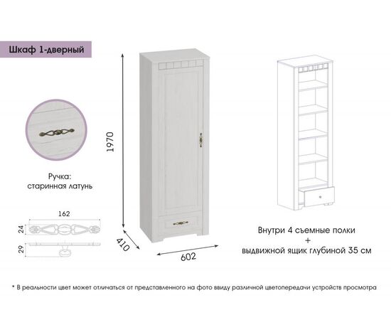 Шкаф Прованс 60.5x41x197 (бодега белая/патина премиум)