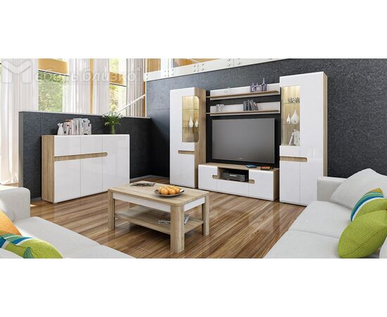 Шкаф-пенал с витриной Леонардо МН-026-01 (белое дерево/ дуб сонома)