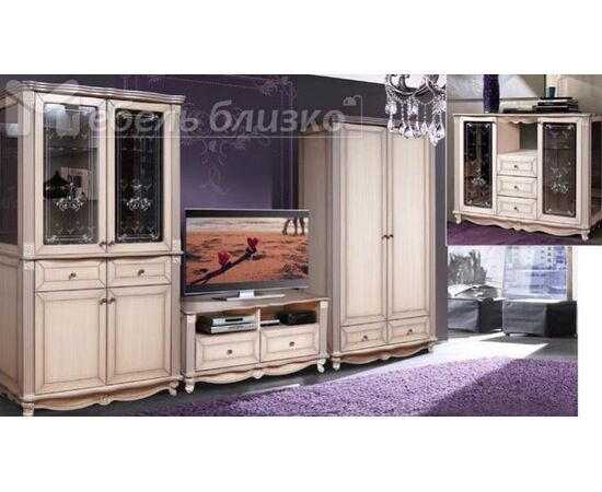 Шкаф с витриной Л Баккара (левая) КМК 0441.13 (дуб молочный)