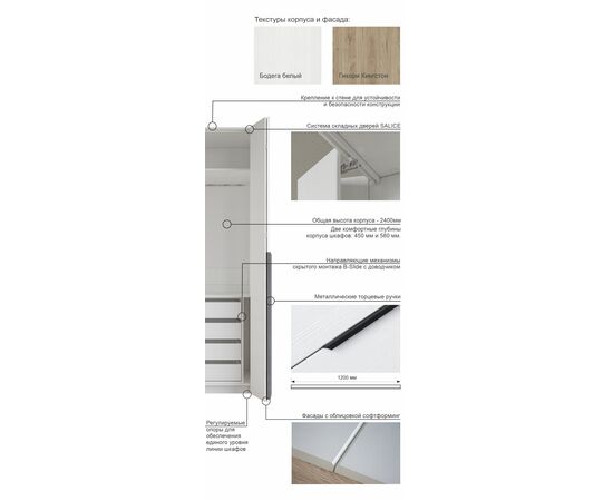 Шкаф серии Лайн ЛН-2D.450.02 (1Z/1Z) (бодега белый)