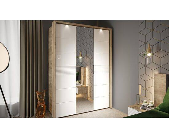 Шкаф трехдверный Джулия Дуб крафт серый/Белый глянец ДЗД без портала