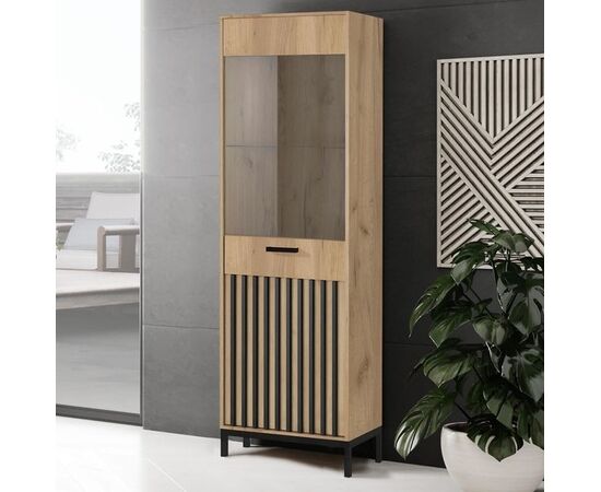 Шкаф-витрина HALMAR LAMINO W-1 дуб крафт/черный