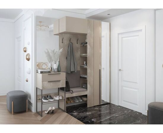Тумба для обуви гармонично сочетает две системы хранения, тем самым экономя пространство, что очень актуально для небольших квартир: