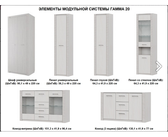 Модульная система Гамма 20 К Шкаф для платья и белья четырехстворчатый (доп. полки отдельно) Ясень анкор светлый/ Сандал светлый