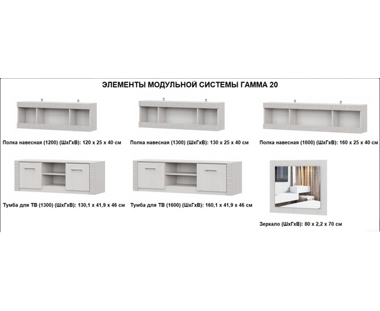 Зеркало ПХМ МС Гамма 20 К Серия №4 Ясень анкор светлый / Сандал светлый (для стола туалетного)