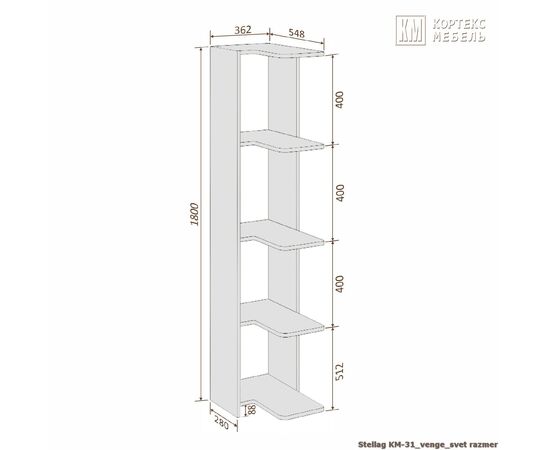 Стеллаж КМ 31 угловой (венге светлый)