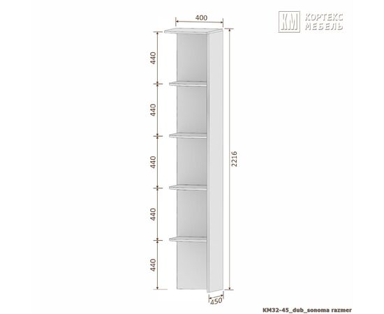 Стеллаж приставной СЕНАТОР КМ32-45 (дуб сонома)