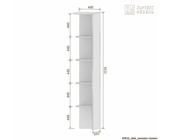 Стеллаж приставной СЕНАТОР КМ32 (дуб сонома)