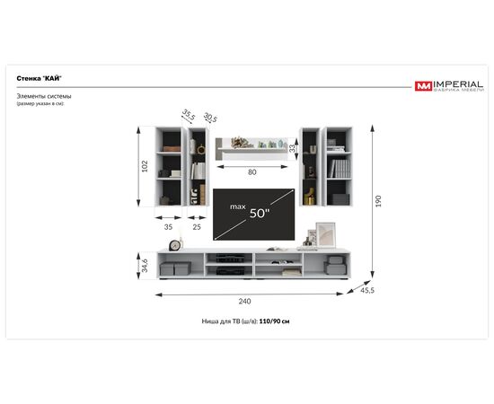 Ниша под телевизор диагональю до 50 дюймов позволит наслаждаться просмотром любимых фильмов на большом экране