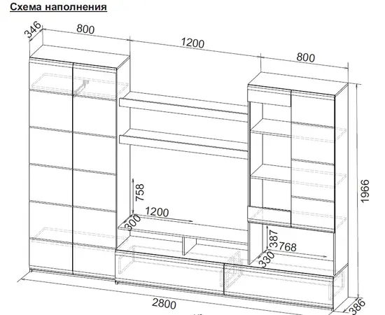 Габаритные размеры изделия (ШхВхГ) 2800х1966х386 мм