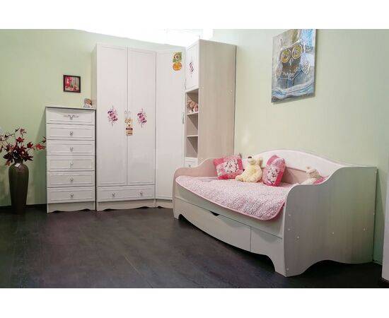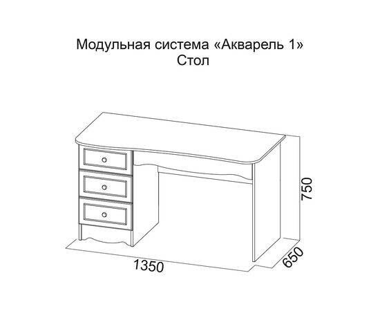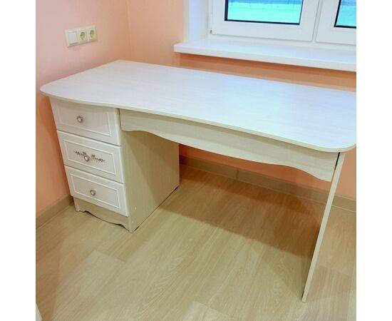 Три ящика размером 31х45 см располагаются сбоку в тумбе и один ящик размером 82,6х45 см расположен под столешницей. Торцы столешницы облицованы 2-х миллиметровой кромкой
