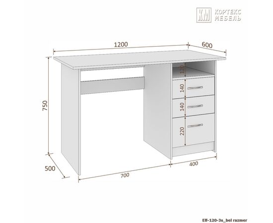 Стол компьютерный ЭЛЬФ 120-3ш (белый)