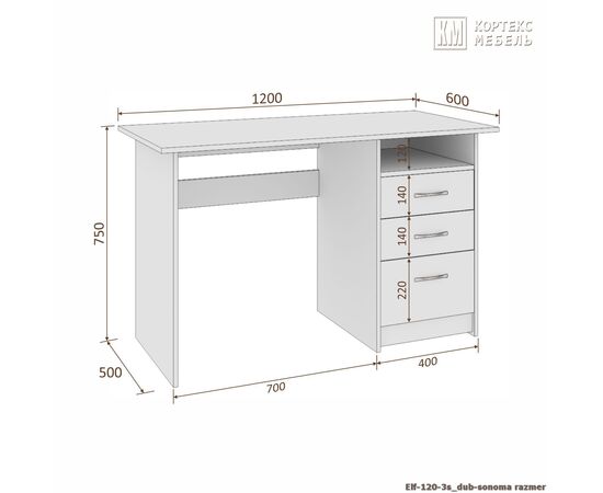 Стол компьютерный ЭЛЬФ 120-3ш (дуб сонома)