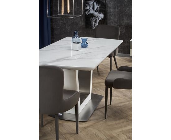 Стол обеденный BLANCO раскладной, белый мрамор/белый, 160-200/90/76