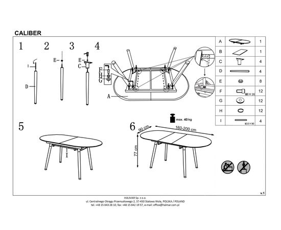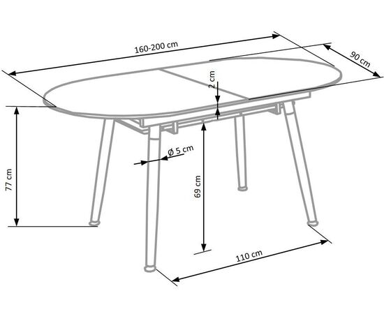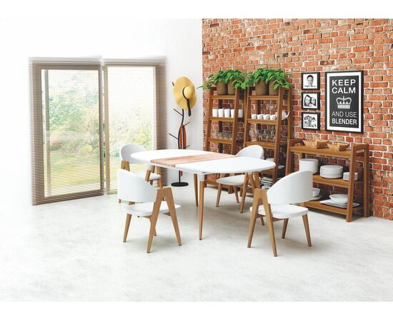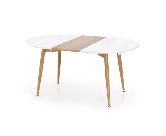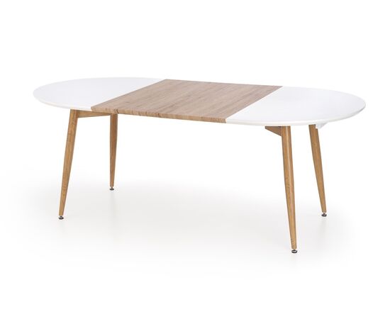 Стол обеденный CALIBER раскладной, белый матовый/дуб сан ремо, 160-200/90/77