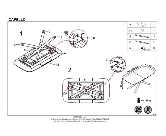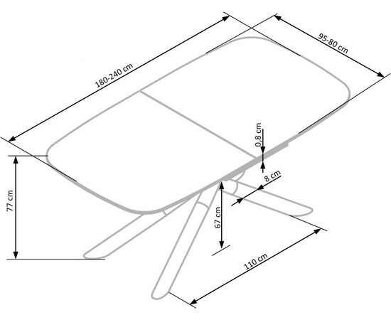 Стол обеденный CAPELLO раскладной, темно-серый/черный, 180-240/95/77