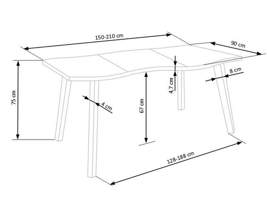 Стол обеденный DICKSON раскладной, дуб натуральный/черный, 150-210/90/75