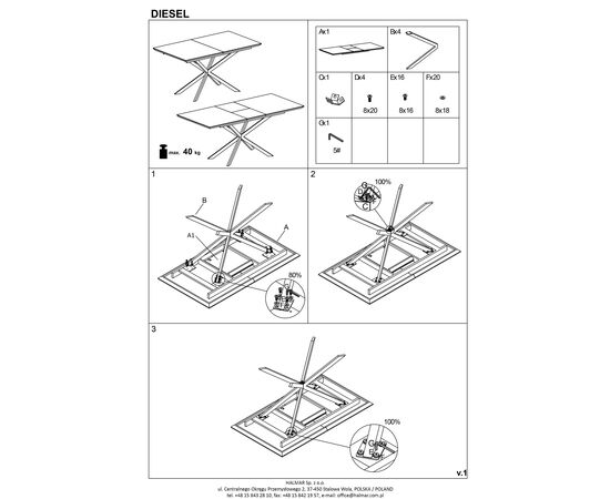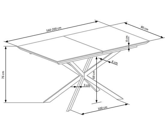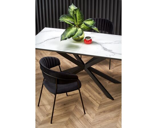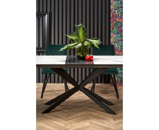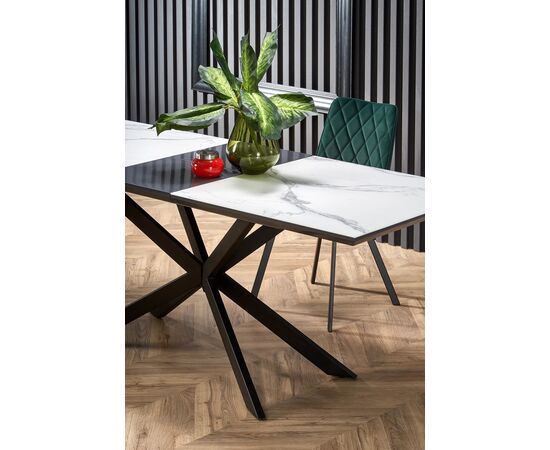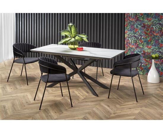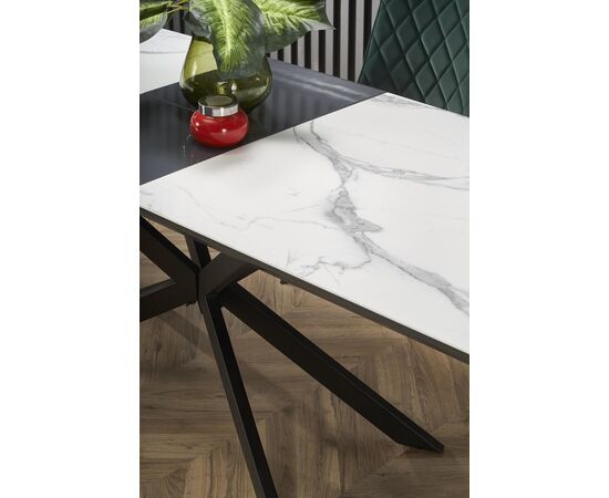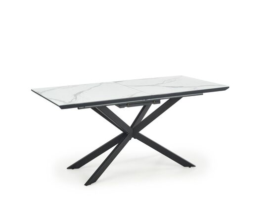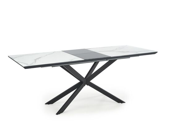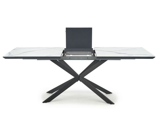 Стол обеденный DIESEL раскладной, белый мрамор/темно-серый/черный, 160-200/90/76