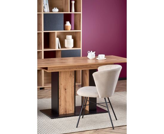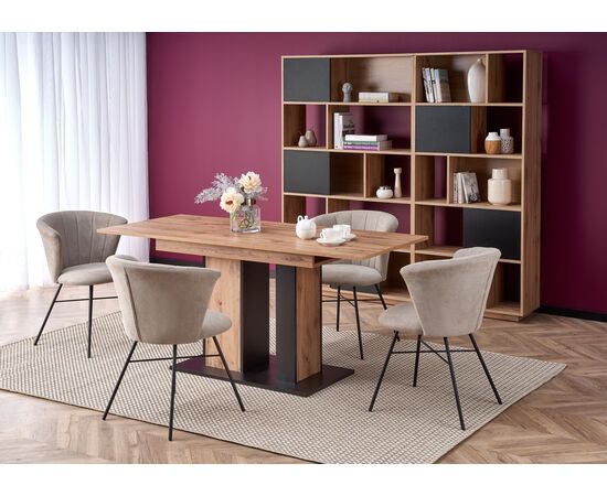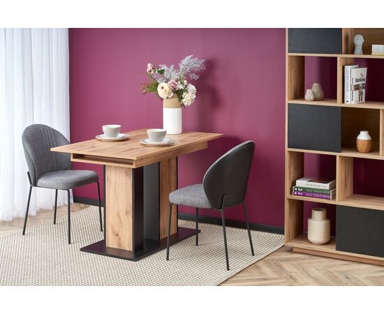 Стол обеденный DOLOMIT раскладной, дуб вотан/черный, 130-175/85/76