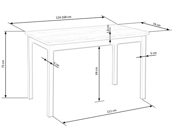 Стол обеденный GREG раскладной, дуб вотан/черный, 124-168/74/75