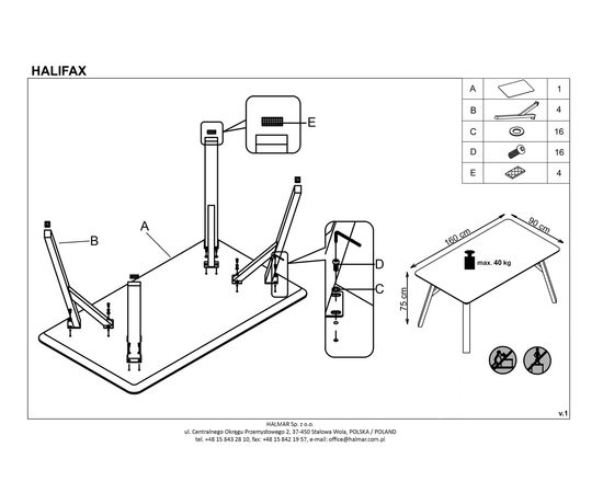 Стол обеденный HALIFAX серый/черный, 160/90/76