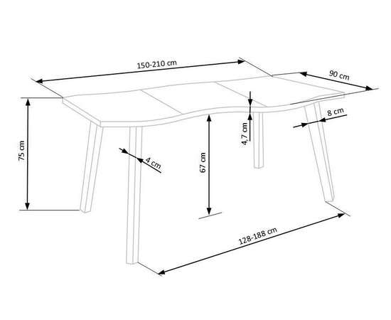 Стол обеденный DICKSON 2 раскладной, натуральный/черный, 150-210/90/75