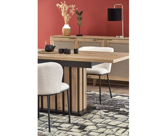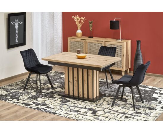 Стол обеденный LAMELLO раскладной, дуб артизан/черный, 130-180/80
