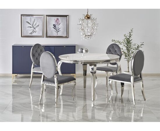 Стол обеденный HALMAR REGINALD белый мрамор/серебряный 120