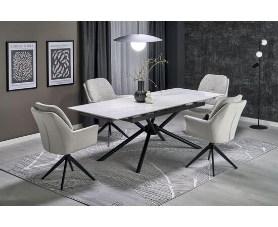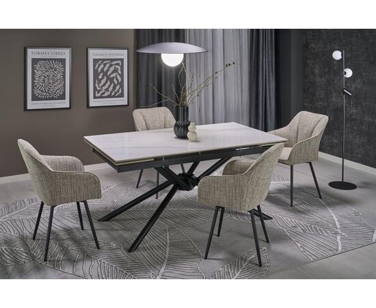 Стол обеденный HALMAR VITORINO белый мрамор/черный 160-220/90