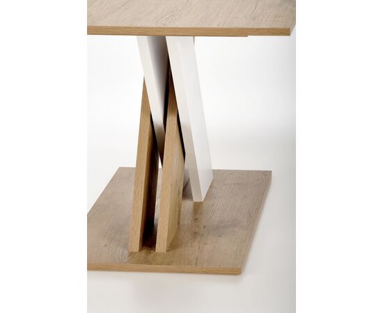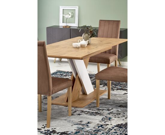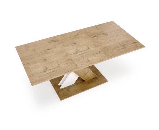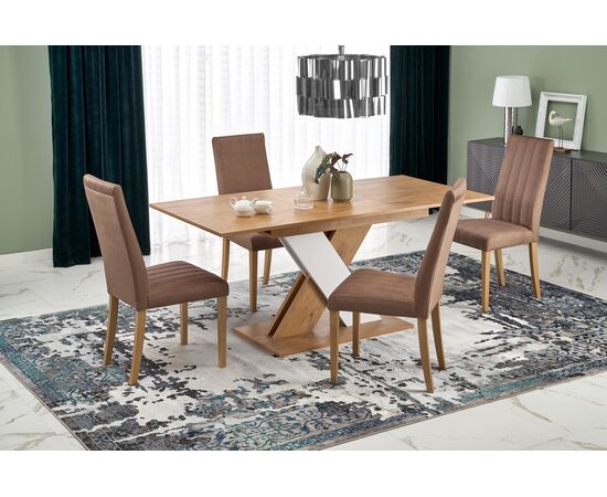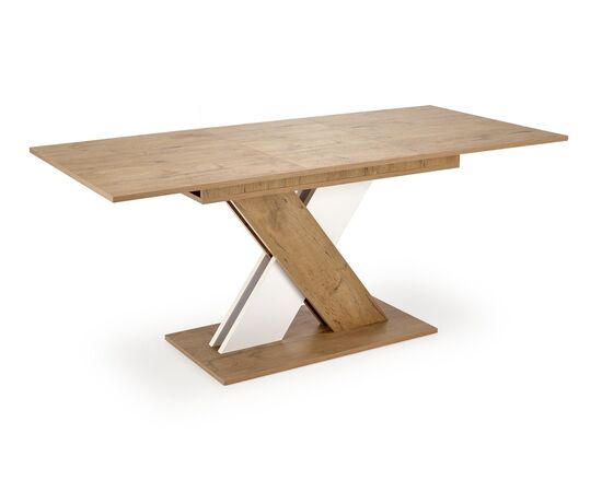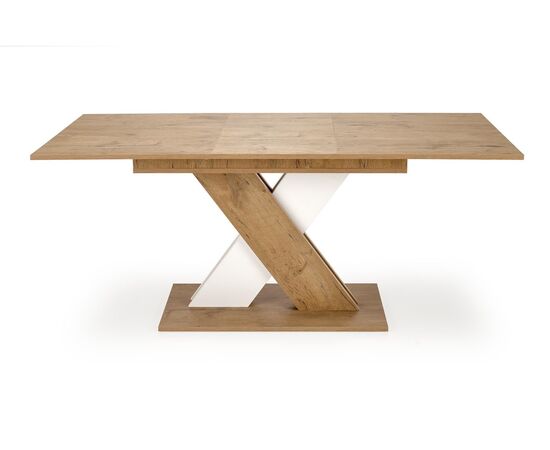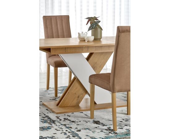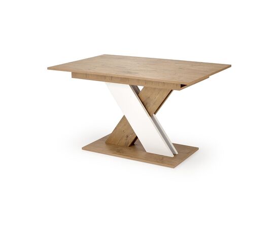 Если вы ищете функциональный и стильный стол, который идеально впишется в ваш интерьер, вам обязательно стоит обратить внимание на Xarelto - раздвижной стол из дуба ланцелот и белого мебельного щита, с необычными Х-образными ножками.