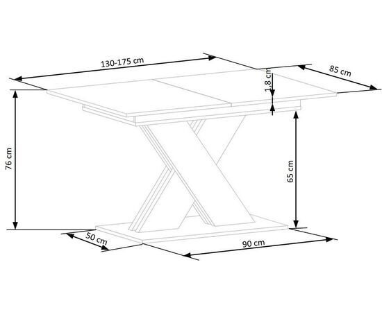 Стол обеденный XARELTO раскладной, дуб ланцелот/белый, 130-175/85/76