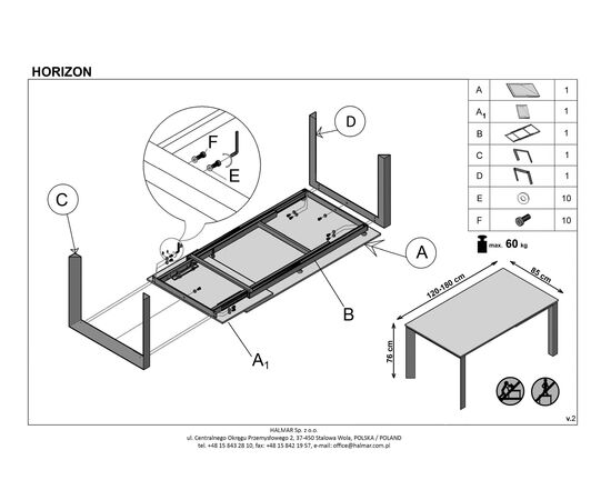 Стол обеденный HORIZON раскладной, серо-черный, 120-180/85/76