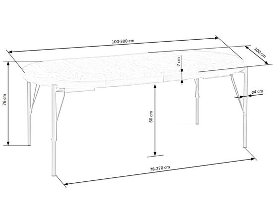 Стол обеденный INFERNO раскладной, дуб натуральный/черный, 100-300/100/76