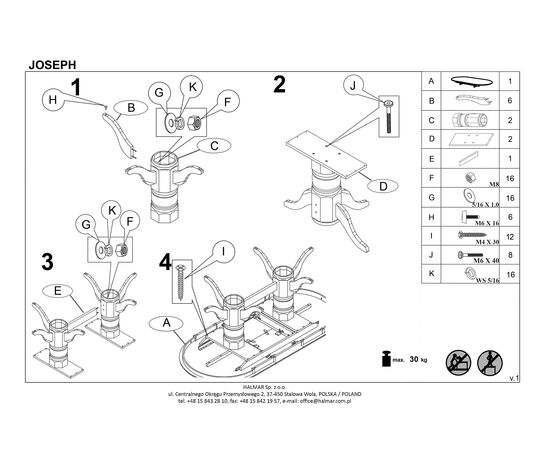 Стол обеденный JOSEPH раскладной, белый/белый, 150-190/90/77