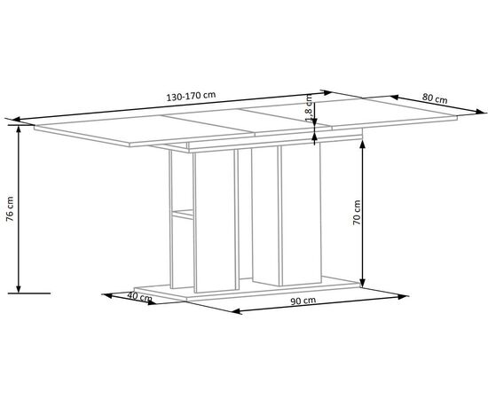 Стол обеденный KORNEL раскладной, белый/белый, 130-170/80/76