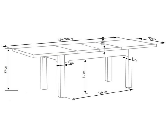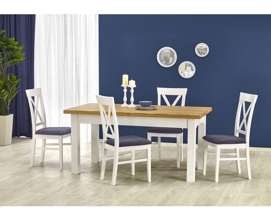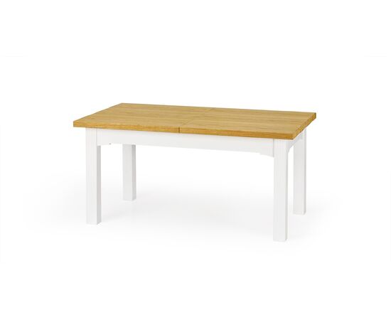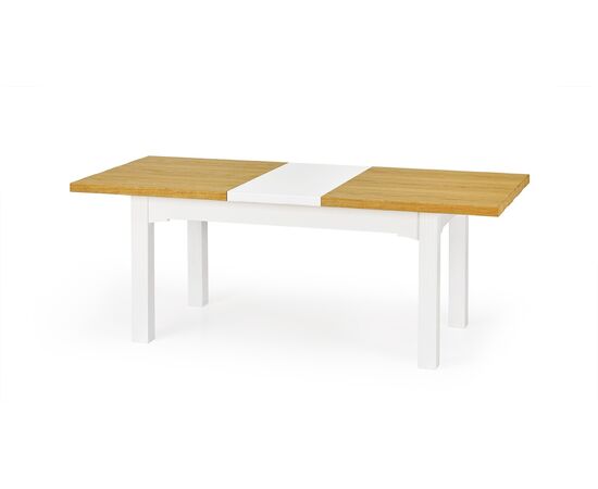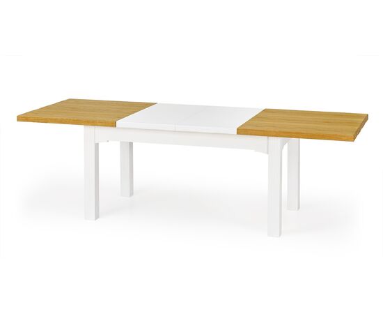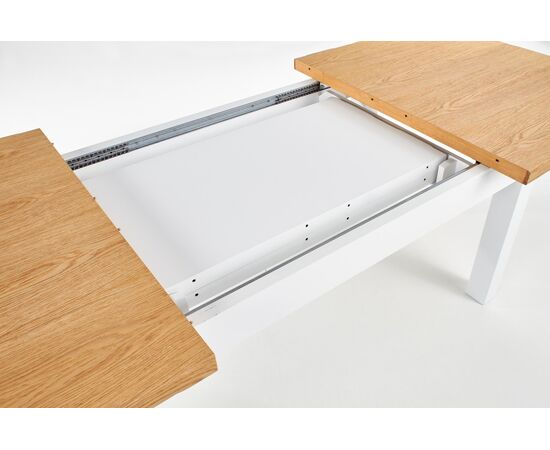 Стол обеденный LEONARDO раскладной, белый/дуб медовый, 160-250/90/77