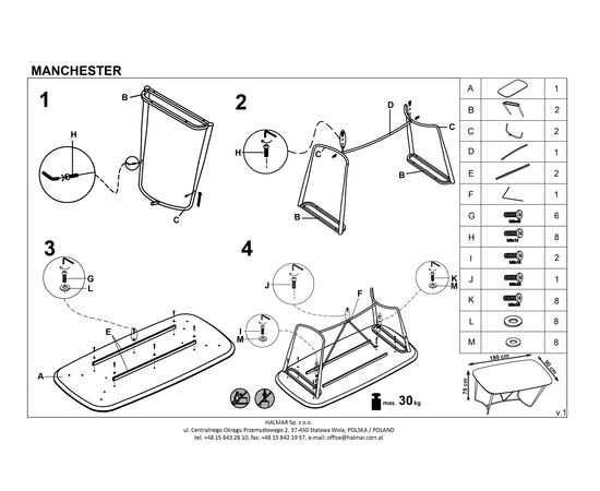 Стол обеденный MANCHESTER орех/черный,золотой, 180/90/76