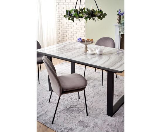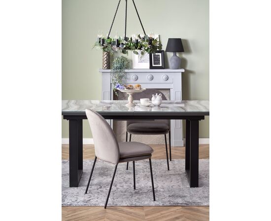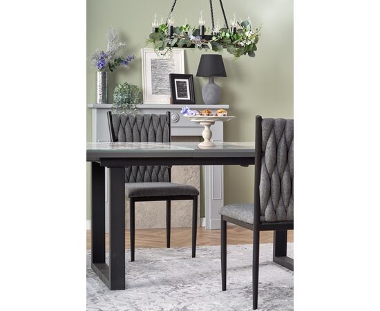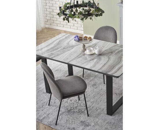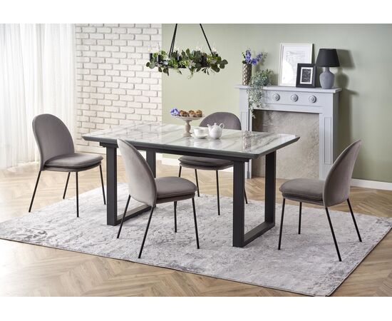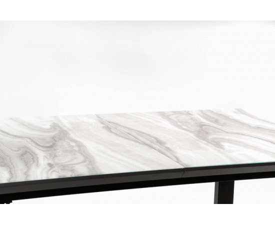 Стол обеденный MARLEY раскладной, белый мрамор/серый/черный, 160-200/90/76