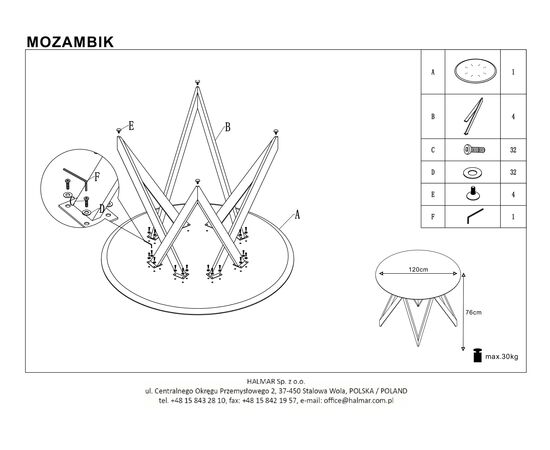 Стол обеденный MOZAMBIK дуб золотой/черный, 120/75