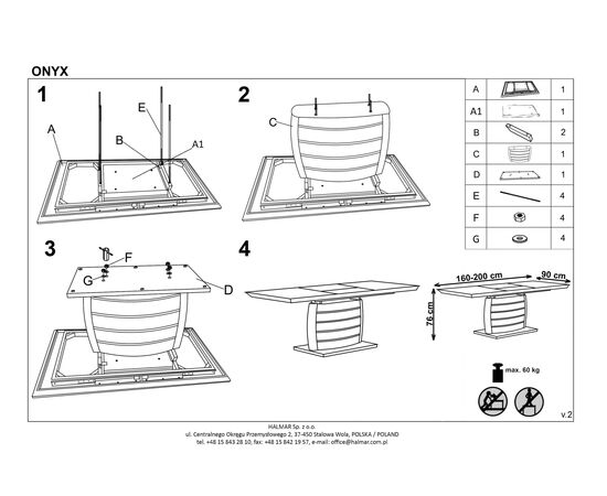 Стол обеденный ONYX, раскладной, белый/белый, 160-200/90/76