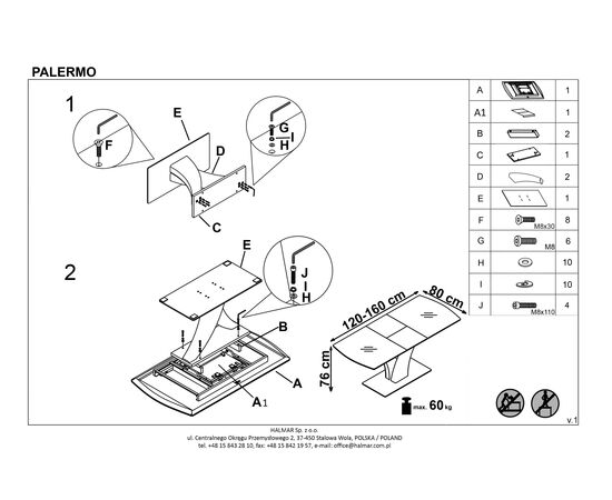 Стол обеденный PALERMO раскладной, белый мат/белый мат, 140-180/80/75