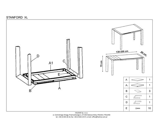 Стол обеденный STANFORD XL раскладной, белый/белый, 130-250/80/76