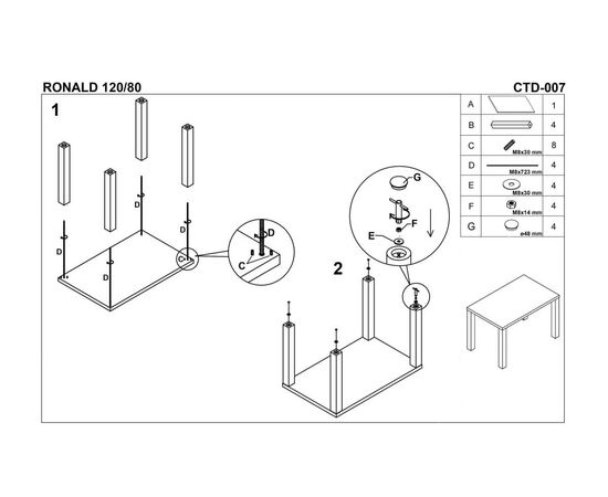 Стол обеденный RONALD 120 белый/белый, 120/80/75