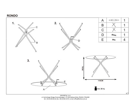 Стол обеденный RONDO прозрачный/золотой, 110/74
