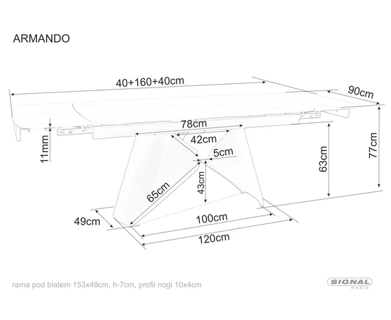Стол обеденный SIGNAL ARMANDO белый/черный 160-240/90